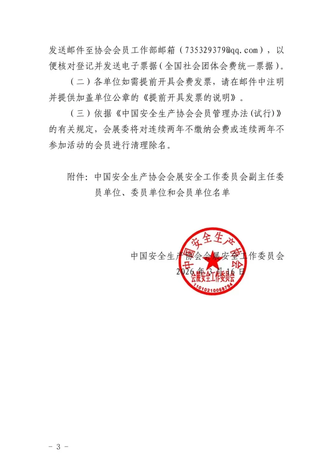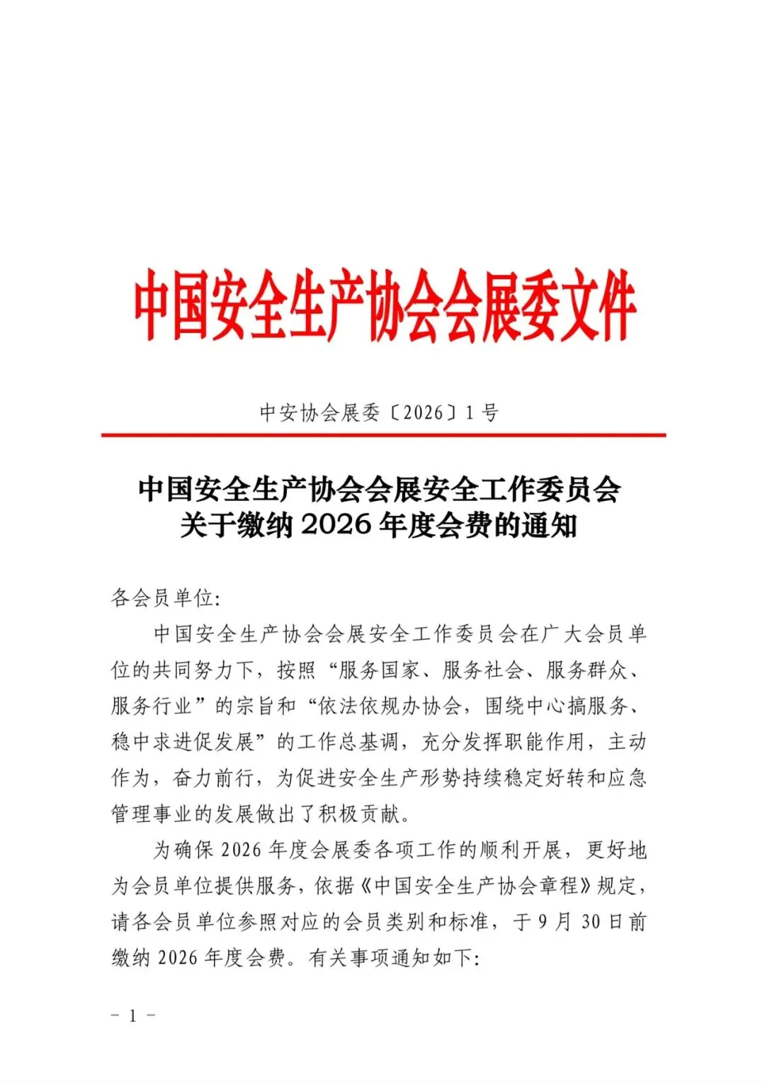 中国安全生产协会会展安全工作委员会关于缴纳2026年度会费的通知