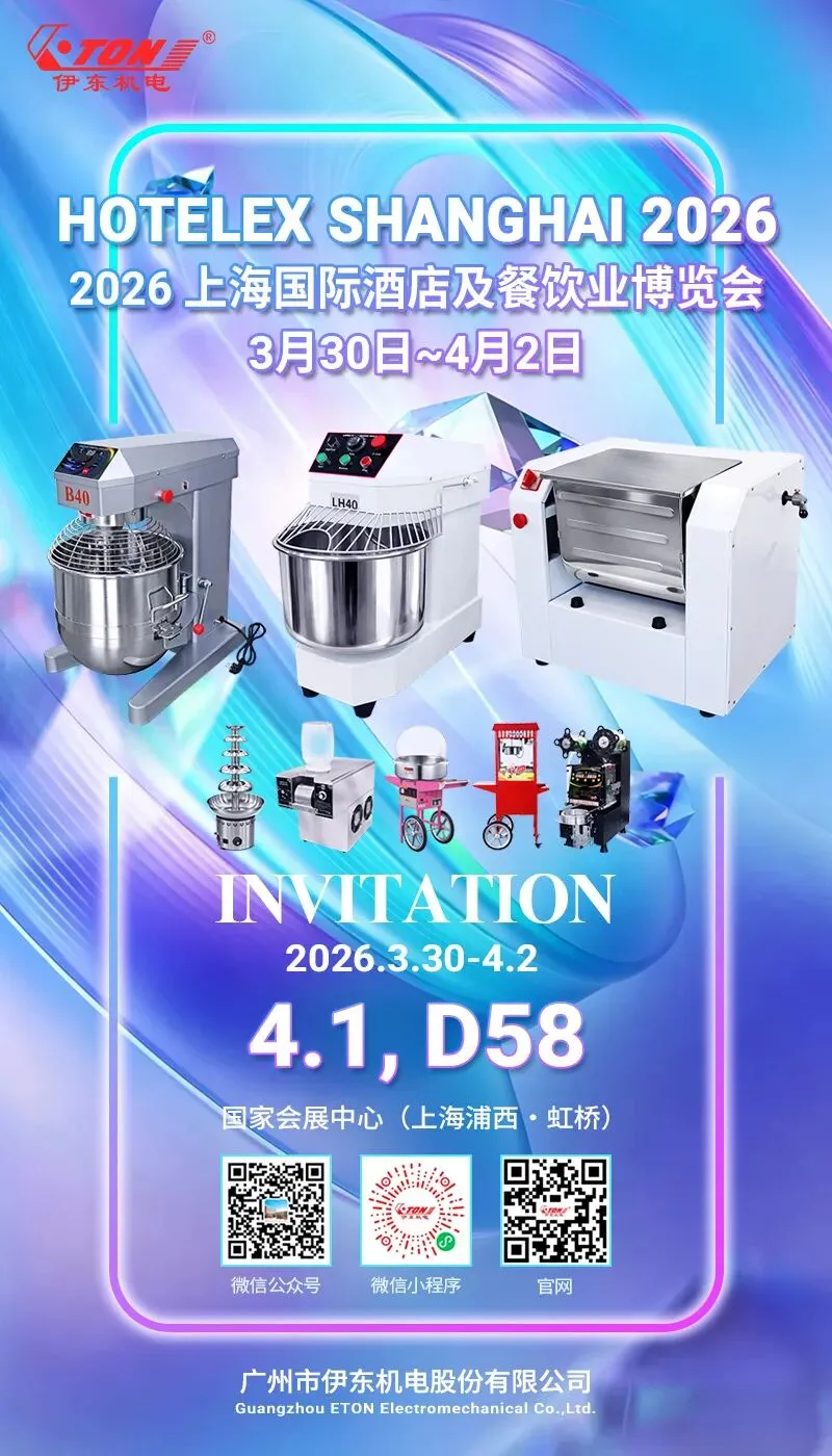想要餐饮创业降本增效?期盼酒店后厨运转更高效?选对靠谱的商用食品机械设备,就是抢占盈利先机。2026第三十四届上海国际酒店及餐饮业博览会(HOTELEX)重磅来袭,作为深耕商用食品机械领域23年的实力厂家,广州市伊东机电股份有限公司携全品类爆款设备、专属洽谈福利重磅亮相,诚邀全国餐饮从业者、酒店采购方、连锁店品牌方、行业合作伙伴莅临展位,现场品鉴真机、对接合作、共赢商机!