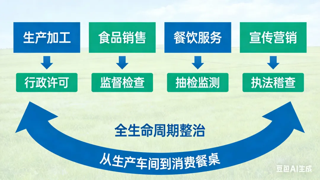 本次整治覆盖生产加工、食品销售、餐饮服务、宣传营销酒类产品流通的全生命周期,综合运用行政许可、监督检查、抽检监测、执法稽查全手段,实现了 “从生产车间到消费餐桌” 的全流程闭环管控,而非单一环节的碎片化整治。