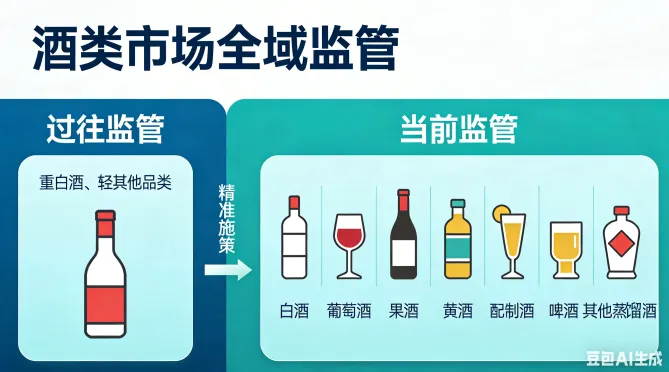 打破了过往 “重白酒、轻其他品类” 的监管惯性,将白酒、葡萄酒、果酒、黄酒、配制酒、啤酒、其他蒸馏酒等所有酒类品类全部纳入整治范围,针对不同品类的突出问题精准施策,实现了酒类市场的全域监管。