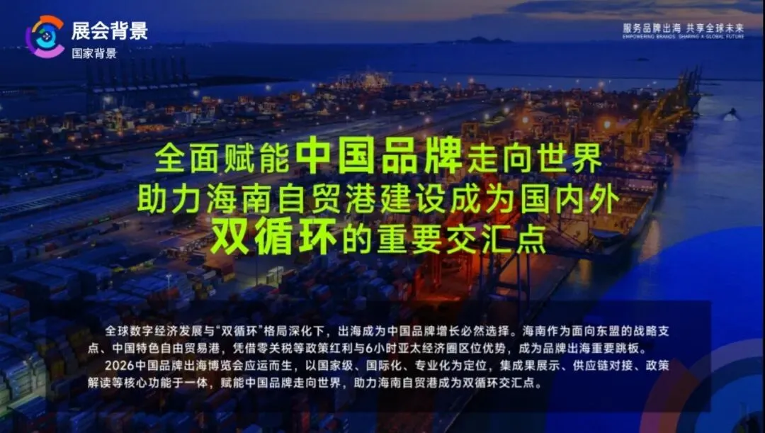 哎哟喂,2026中国品牌出海博览会,10月20号海南开整!国家级平台,全球资源都往这儿跑!9万平米展区,1500个展位,七大领域任你选!5000多家采购商,1000多个国际团,订单多到数不过来!赶紧的,别等别人抢完了才想起来!