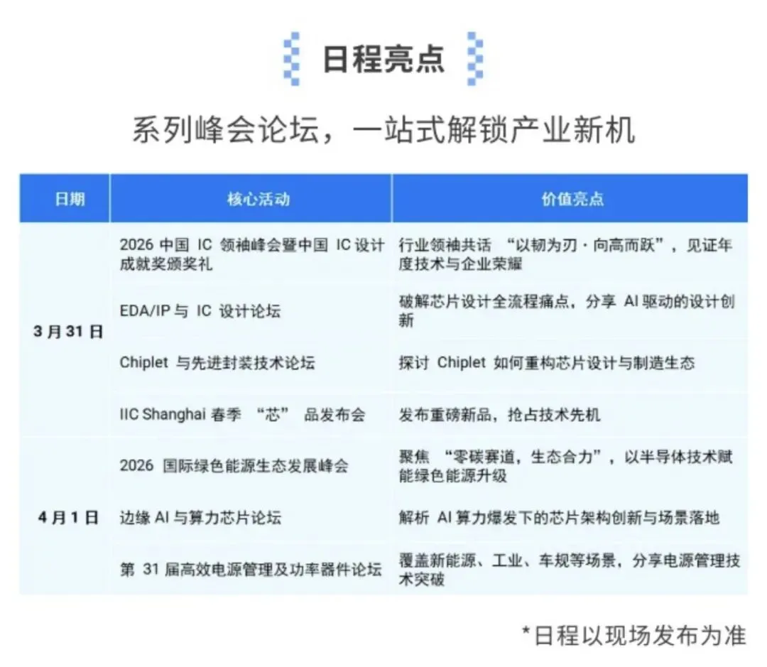 2026国际集成电路展览会暨研讨会(IIC Shanghai)由AspenCore主办,是极具影响力的系统设计盛会,将于2026年3月31-4月1日在上海浦东丽思卡尔顿酒店盛大举办,上海市交通电子行业协会作为本次活动的支持单位,特邀请各会员单位及行业同仁免费报名参会。