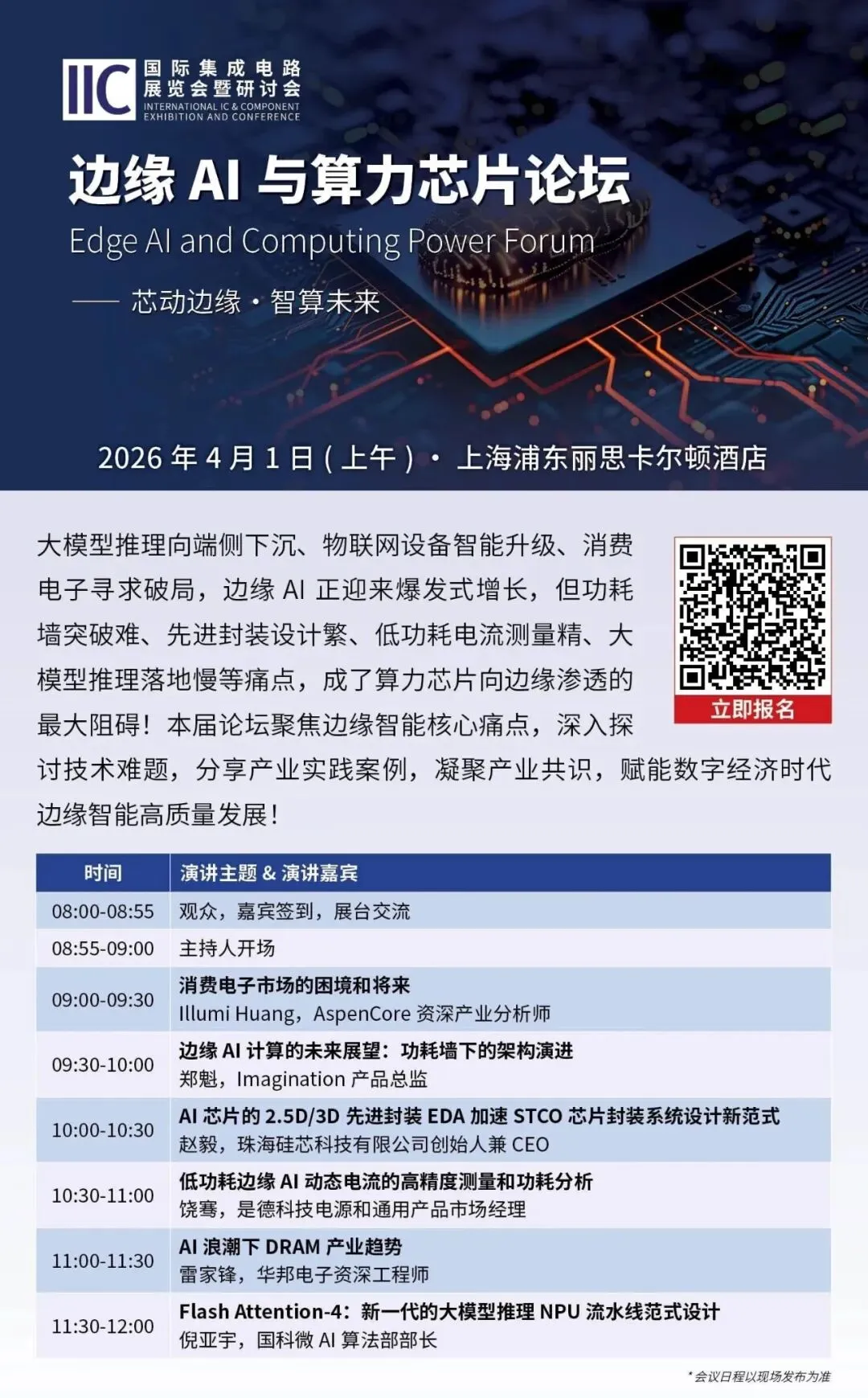2026年3月31日到4月1日的会议议程已经新鲜出炉,欢迎扫描论坛海报二维码立即报名!