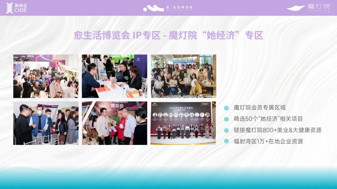 本届愈生活博览会创新融合多元IP,现场率先公布3大重磅IP,包括魔灯院“她经济”商机博览会、“不!松弛”疗愈生活节以及广州瑜伽艺术节,更多IP将陆续加入博览会,多元IP将为展商创造丰富商业触点,为观众带来独特疗愈体验。
