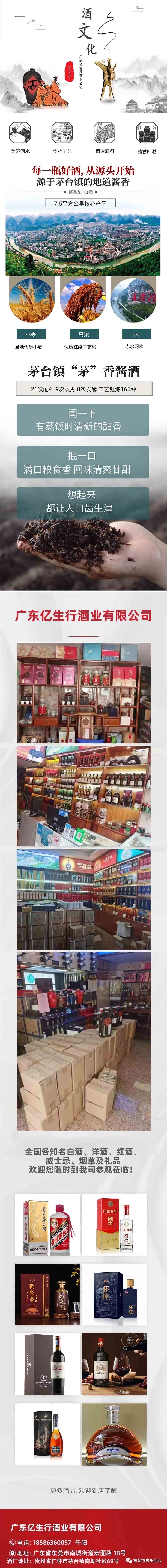 广东亿生行酒业有限公司创建于2017年,位于东莞市南城街道宏图路18号,公司专营全国各知名白酒、洋酒、红酒、威士忌、烟草及礼品。