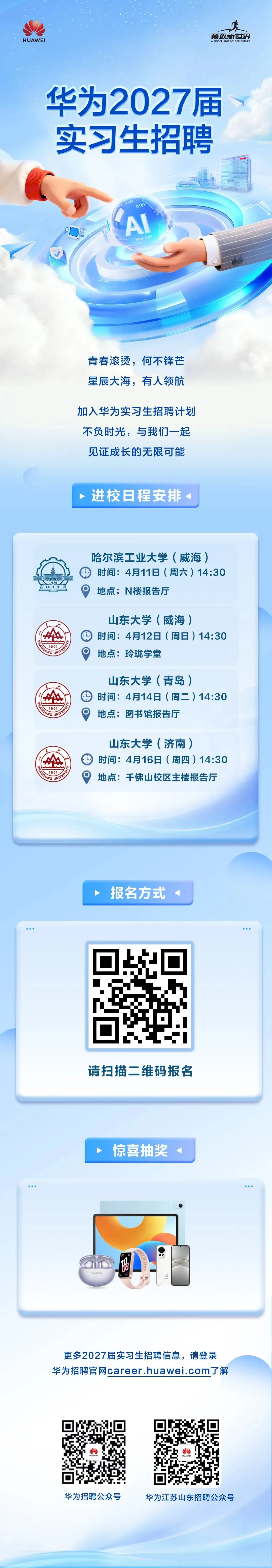 华为2027届实习生招聘岗位推介会日程安排(山东区域高校)