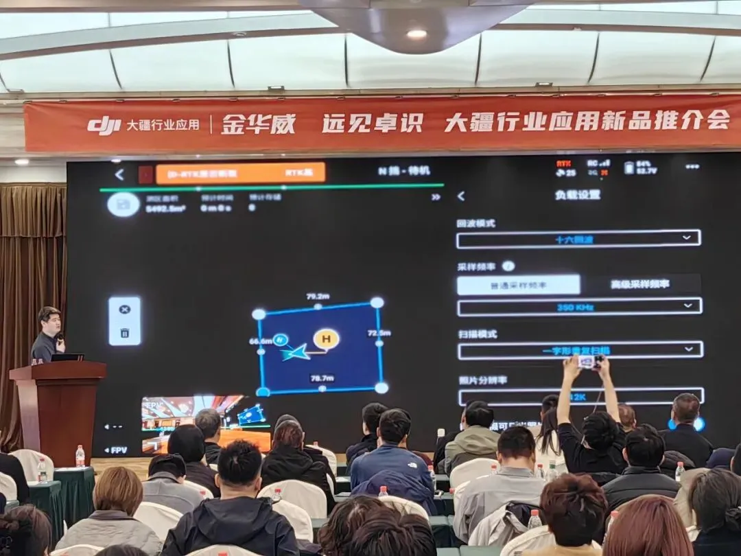 金华威 张玉龙先生对D-RTK 3 多功能基站作详细介绍。该产品可灵活切换多种工作模式:基站模式实现无人机厘米级高精度定位;中继模式有效扩展作业范围;流动站模式为高精度航测提供一站式解决方案,从容应对城市峡谷信号遮挡、工业场景高精定位等复杂环境,为无人机安全作业筑牢可靠信号保障。