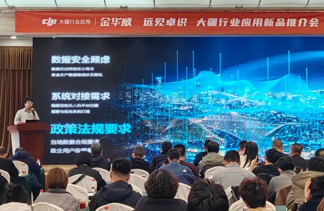 金华威 李杨先生重点介绍了大疆司空2 一体机。该产品在在应急指挥、安防巡查、智慧城市等关键场景中,凭借实时数据同步能力,实现从单点作业到多端云端协同的跨越,构建起信息采集、实时传输、统一调度的全链路闭环,大幅提升应急响应与决策效率,为用户提供全域态势感知,支撑高效精准指挥调度。
