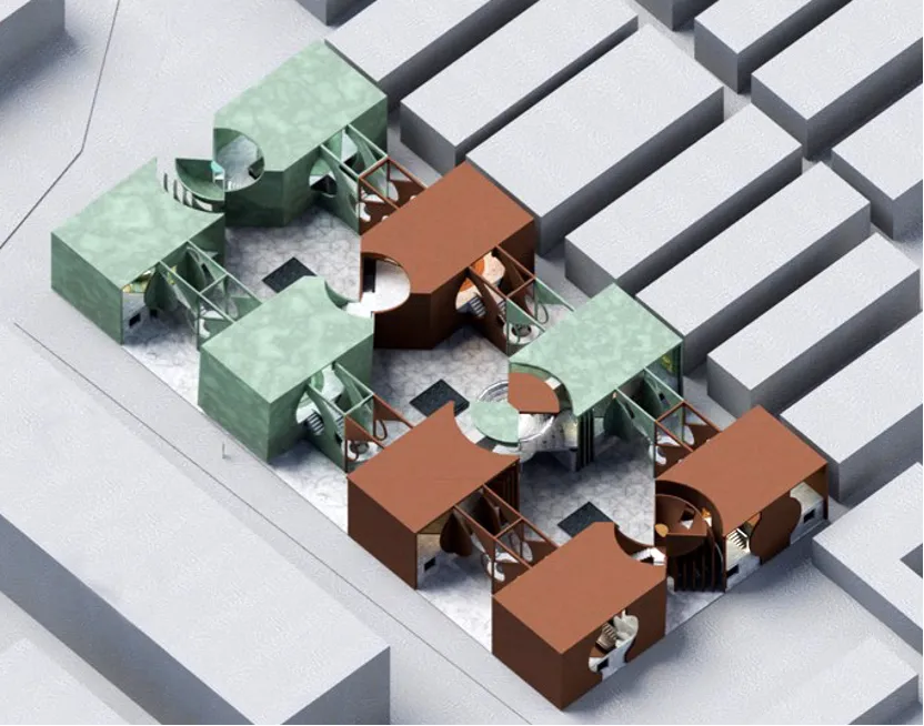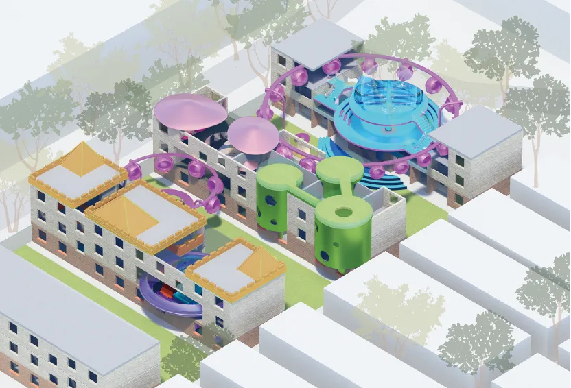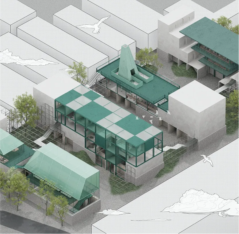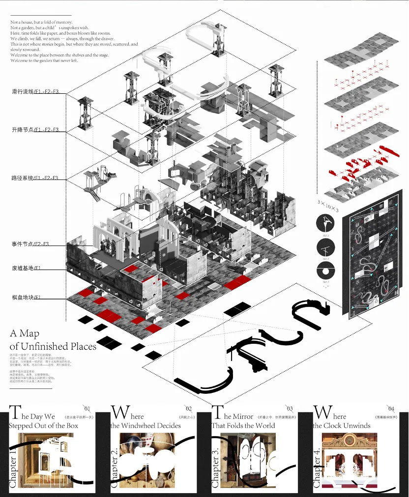 作品简介:本方案以“蛇梯棋”的游戏逻辑为原型,结合童话叙事与儿童参与性设计,试图在城市缝隙中创造一个可探索的“秘密花园”。以动态互动为核心,将建筑打造为一个融合体验和社会参与的公共实验场。