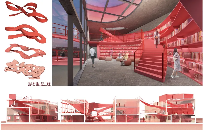 作品简介:设计从《考工记》的造物哲学出发,将“因其用而立其制”等设计思想延申至空间设计中,结合社区游戏中符号式的空间原型、互动性的任务机制等组织方式,旨在构建一个由“像游戏一样的空间器物”组成的行为触发器系统,从而形成富有引导性的学习场景,以此探索当代青少年与中老年在城市空间中的趣味性互动与成长机制。