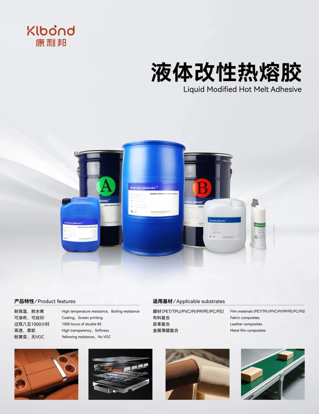 本次展会,康利邦将展示液体改性热熔胶、PU压敏胶、UV胶、处理剂、有机硅凝胶、特种硅胶、树脂&特种硅油七大核心产品系列,为客户提供一站式胶粘解决方案: