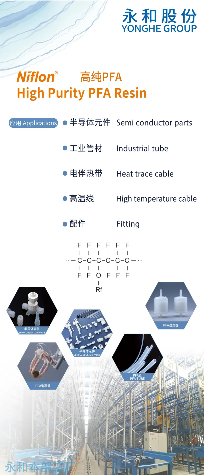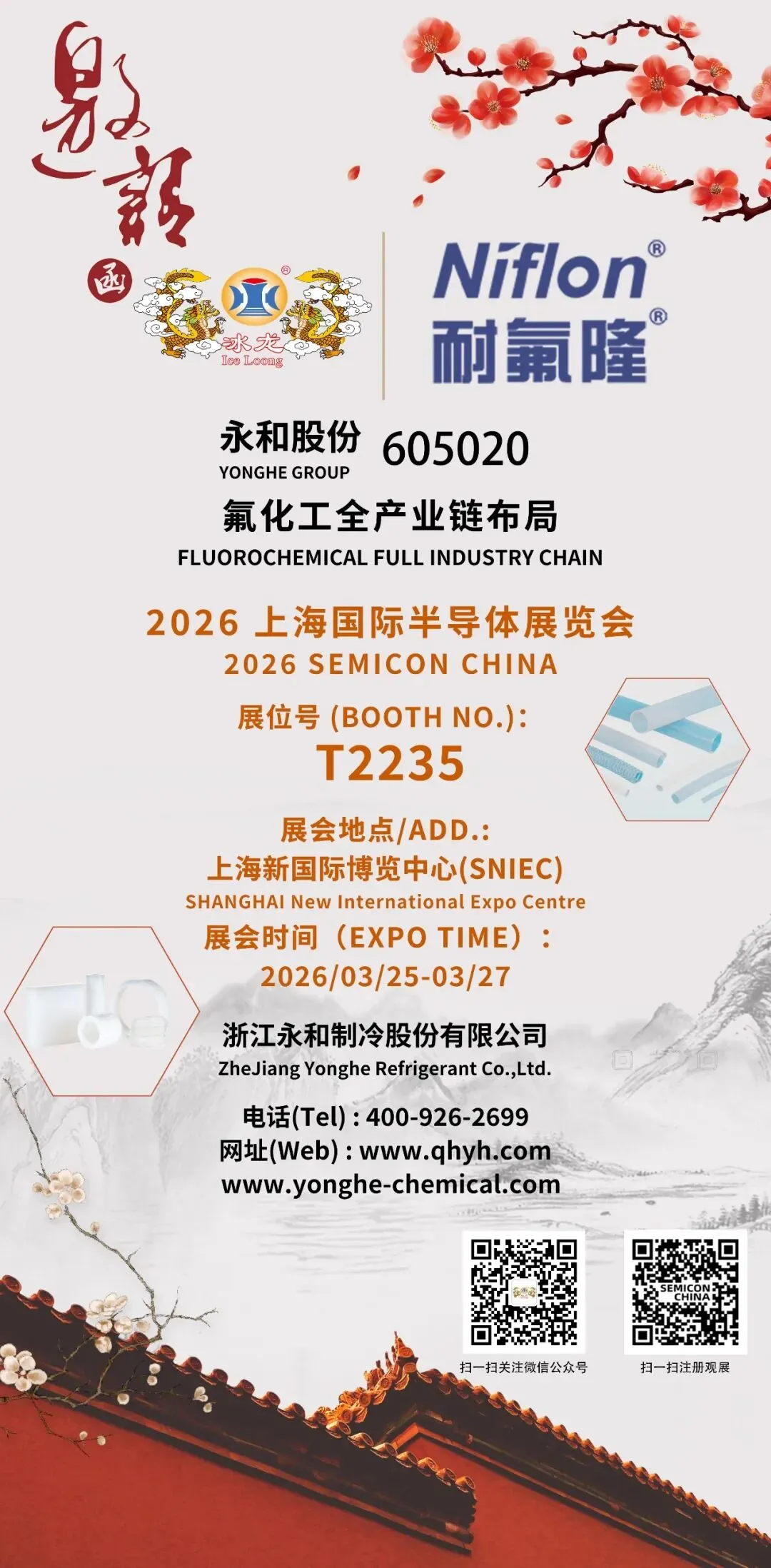 深耕氟化工行业多年,永和股份如约赴展。本次展会,永和股份将携高纯PFA、FEP、PTFE、PVDF、全氟己酮、电子浸没冷却液等半导体关键含氟新材料集中亮相,赋能先进制程、封装散热、高纯输送等核心场景。