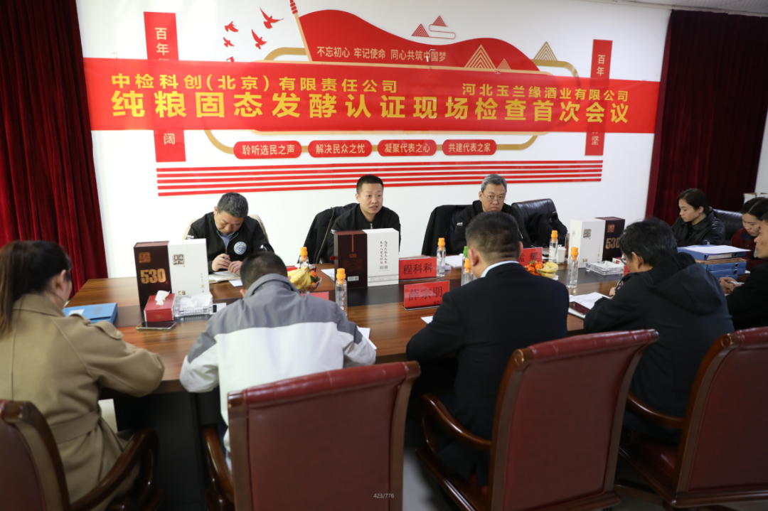 中检科创专家组同企业人员做了会议交流,并在会议结束后进行了纯粮固态发酵白酒认证的现场检查。