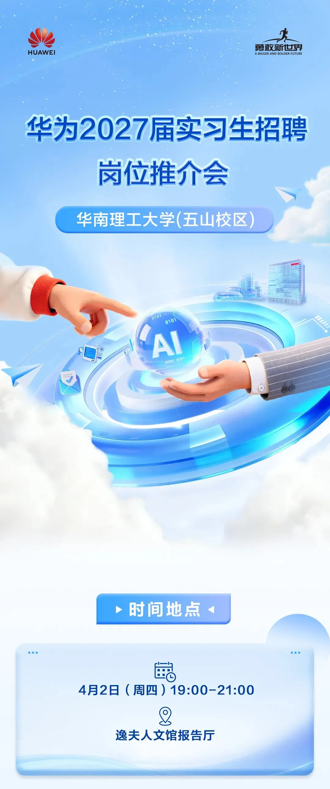 4月2日 | 华为2027届实习生招聘岗位推介会—华南理工大学(五山校区)