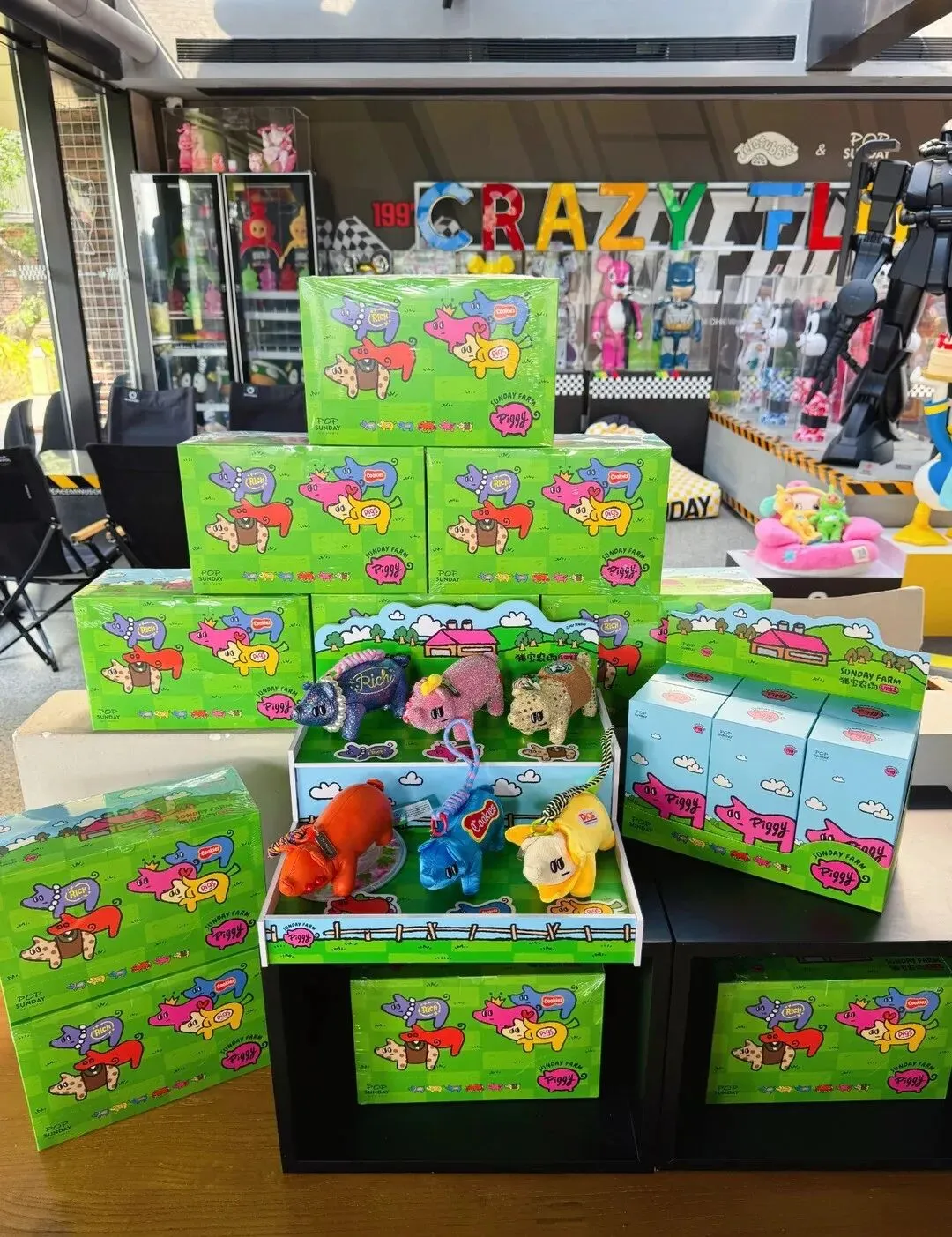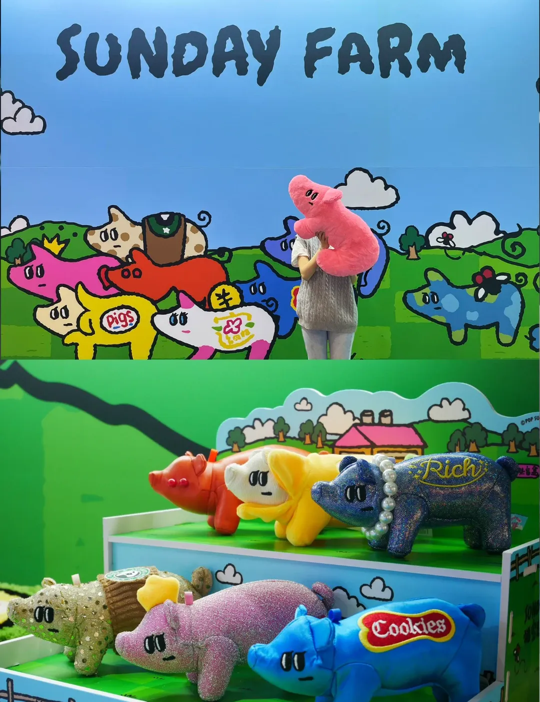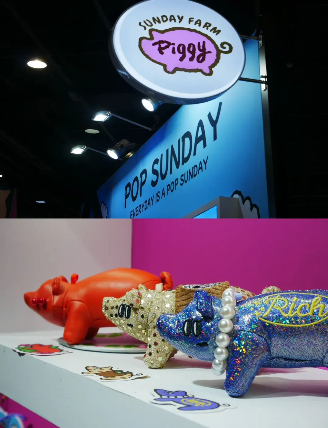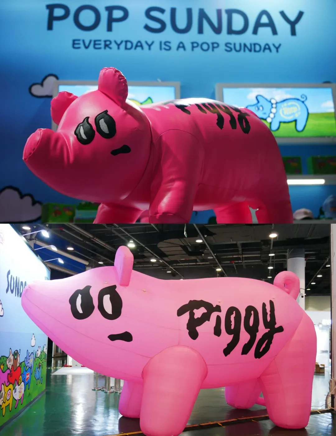 2024年10月17日至21日,第十八届杭州文化创意产业博览会暨2024杭州国际潮流艺术展在杭州白马湖国际会展中心举办。POP SUNDAY携「猪宝农场」首展亮相B馆B1-12展位,以“向新力”呈现潮流艺术体验。