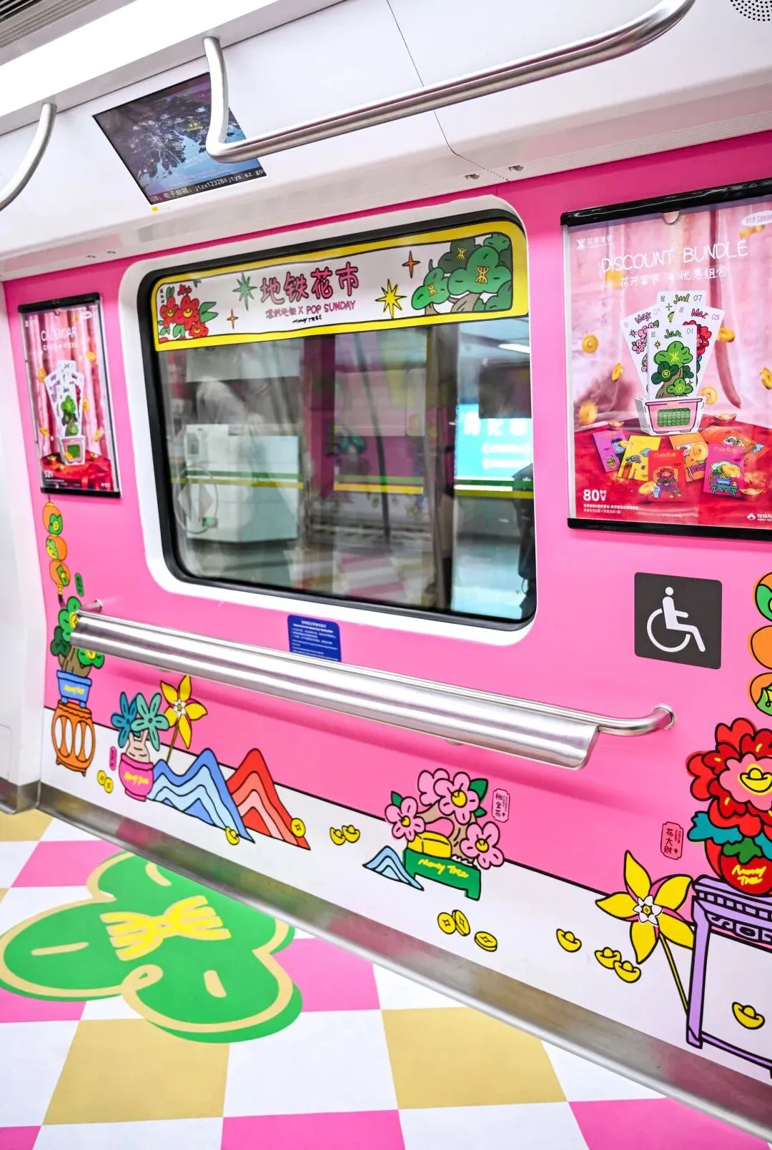 2026年1月,POP SUNDAY以经典IP摇钱树2.0花开富贵为视觉核心,将新春花市的热闹烟火气与年味氛围,搬进深圳地铁,打造出别样的新春沉浸式体验。