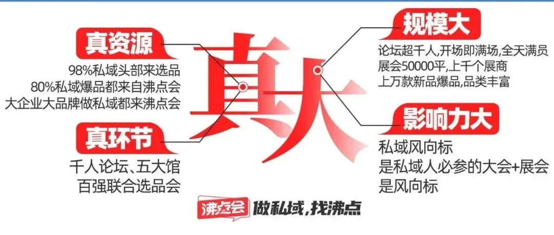 打完北方市场,接下来的南方战场,绝对是所有私域人不能错过的重头戏!8 月 8-9 日,沸点会广州站,就要在广州保利世贸博览馆正式开启,而这场展会的规模和资源,真的超出你的想象!
