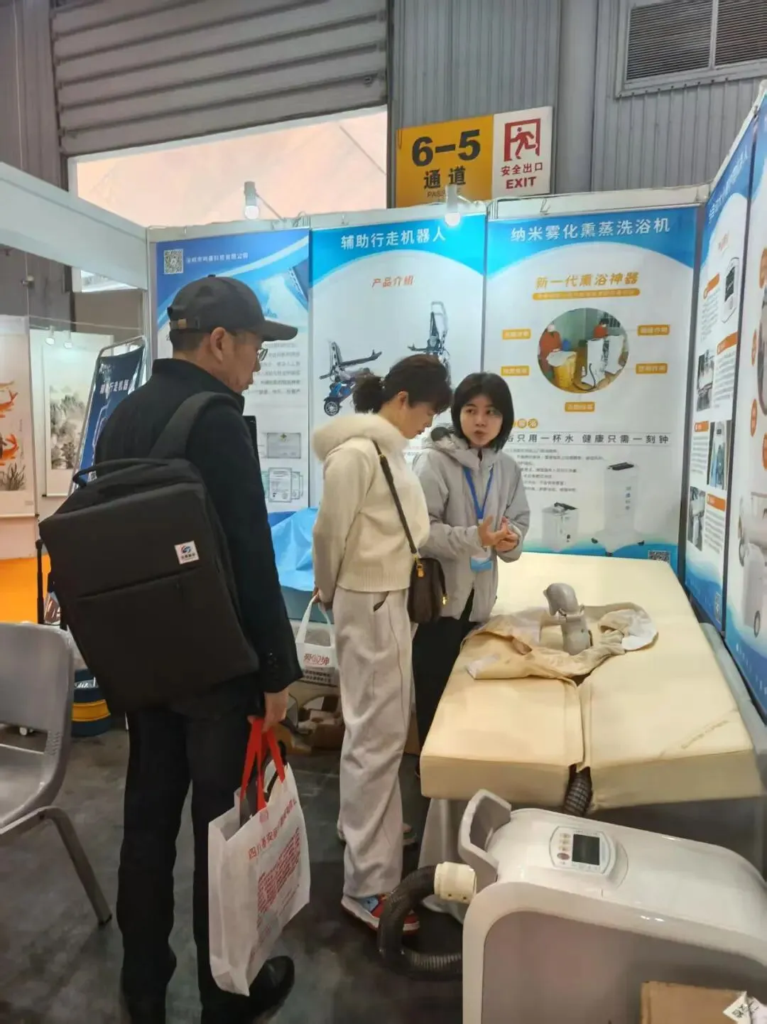 作为刚荣获广东省残联“科技赋能 助残同行”示范单位称号的智能护理企业,呵康科技此次参展备受期待。展位前人头攒动,来自西南地区的养老机构代表、康复渠道商及普通家庭用户络绎不绝。辅助行走机器人体验区前,不少长者在工作人员耐心指导下尝试迈步,现场赞叹声不断;纳米熏蒸助浴机旁,专业观众围着产品仔细研究移动设计与蒸汽温度控制细节;全自动大小便护理机器人演示区,更是吸引了一波又一波的采购商驻足洽谈。