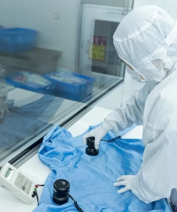 全程采用15MΩ·cm超纯水,末道漂洗严格控电导,搭配中性无磷专用清洗剂,禁用硅油、荧光增白剂,控温洗涤保护防静电面料,做到零化学残留。