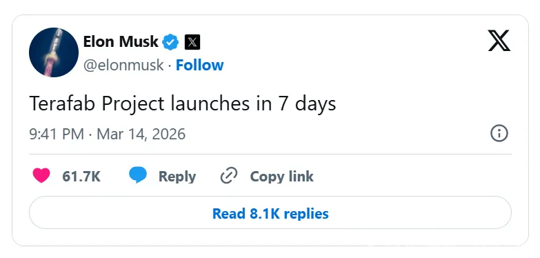 l 马斯克官宣AI芯片项目“Terafab”即将启动