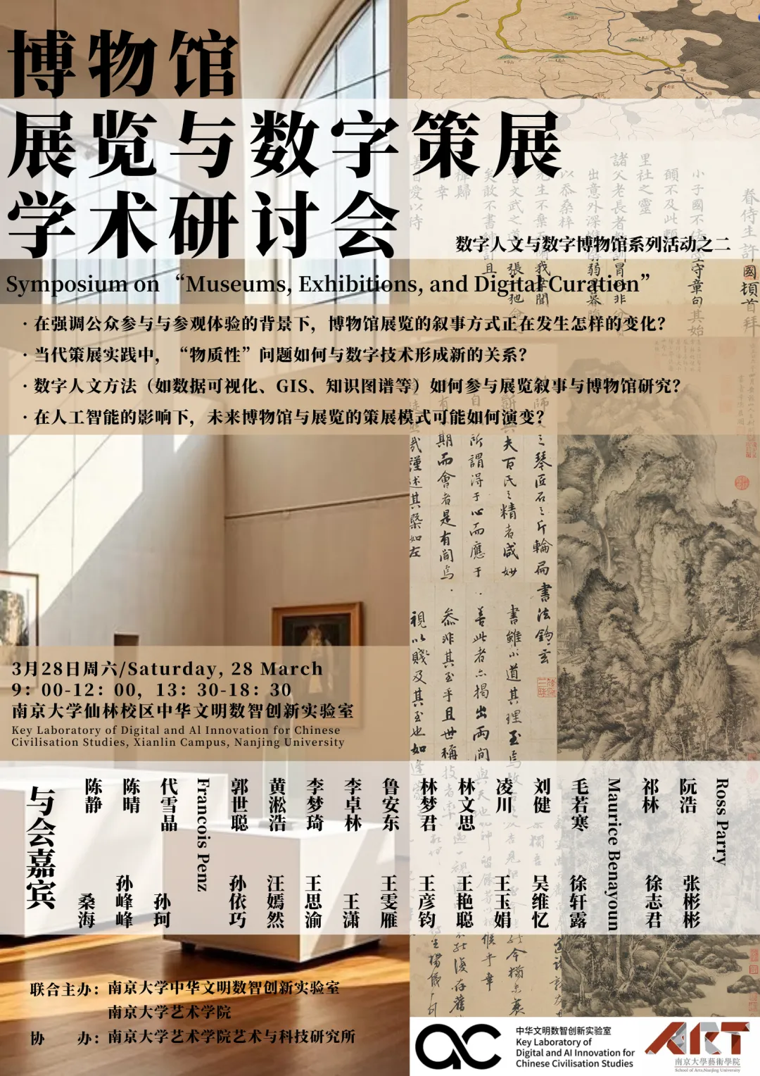 在此背景下,我们拟于3月28日在南京大学仙林校区组织一次以“展览、博物馆与数字策展”为主题的小型学术研讨会,邀请来自博物馆、艺术、数字人文、建筑与展览设计等不同领域的国内外学者与实践者,共同讨论数字技术时代策展理念与方法的变化,并探讨展览作为知识生产与文化实践方式的新的可能性。