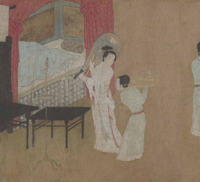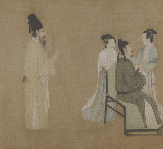 醉的公共性目的于此显现:它既是对严谨日常的合意反叛,亦是以可控的失序巩固群体认同。当众人共醉,个体逾越才不致构成威胁,反而强化了宴会作为“礼之实践”的戏剧性。然而画末的散宴私语、倦容初露,却暗示醉终将退潮,留下介于礼法重整与私人真我之间的微妙间隙——那正是宴饮最深邃的留白。