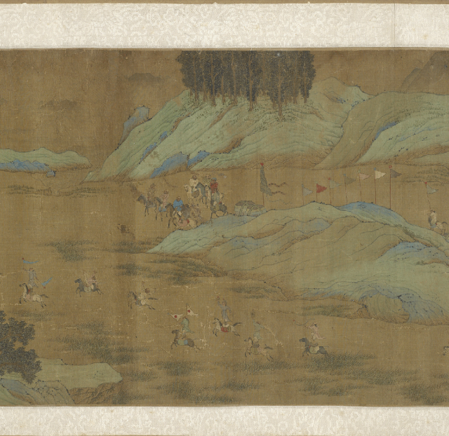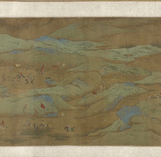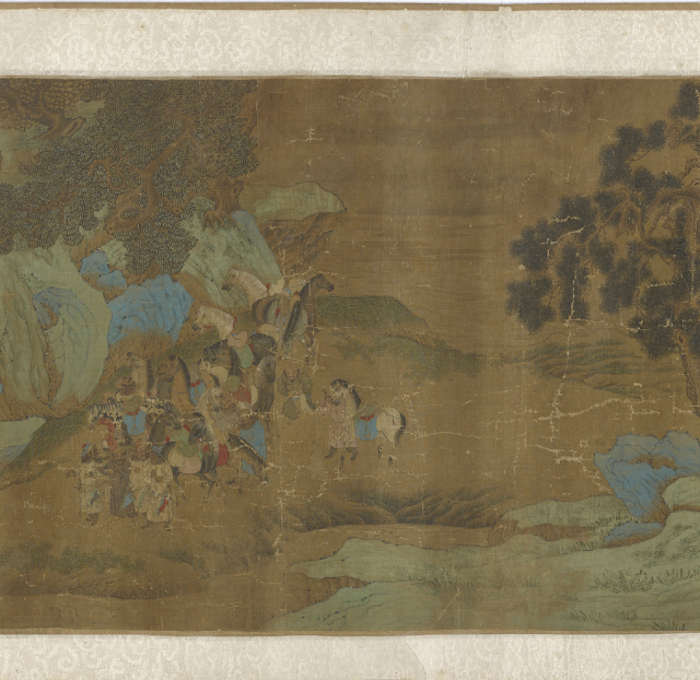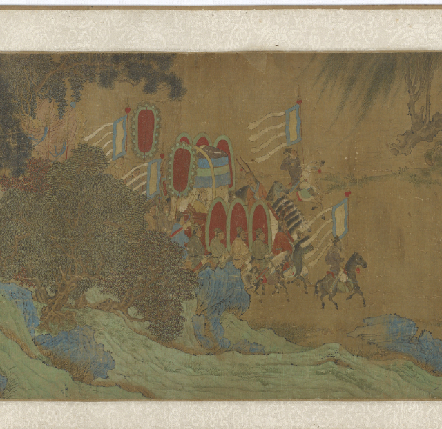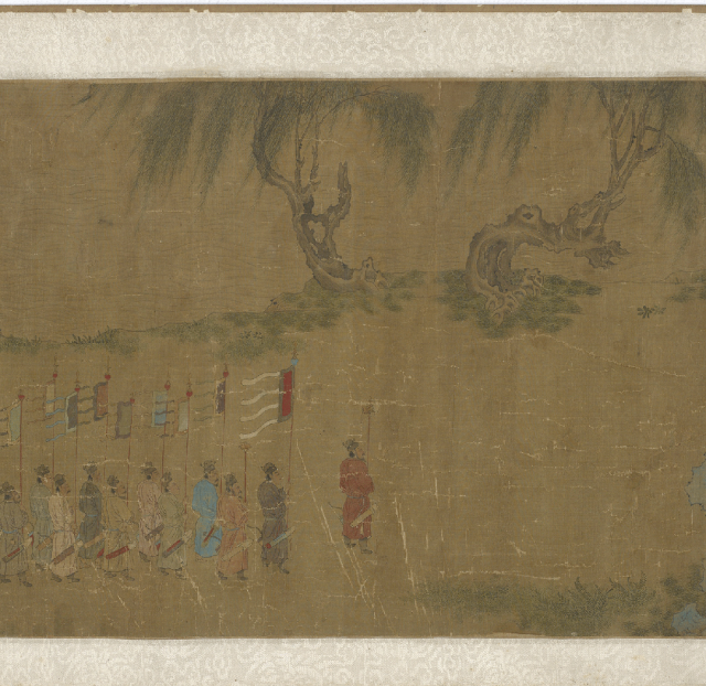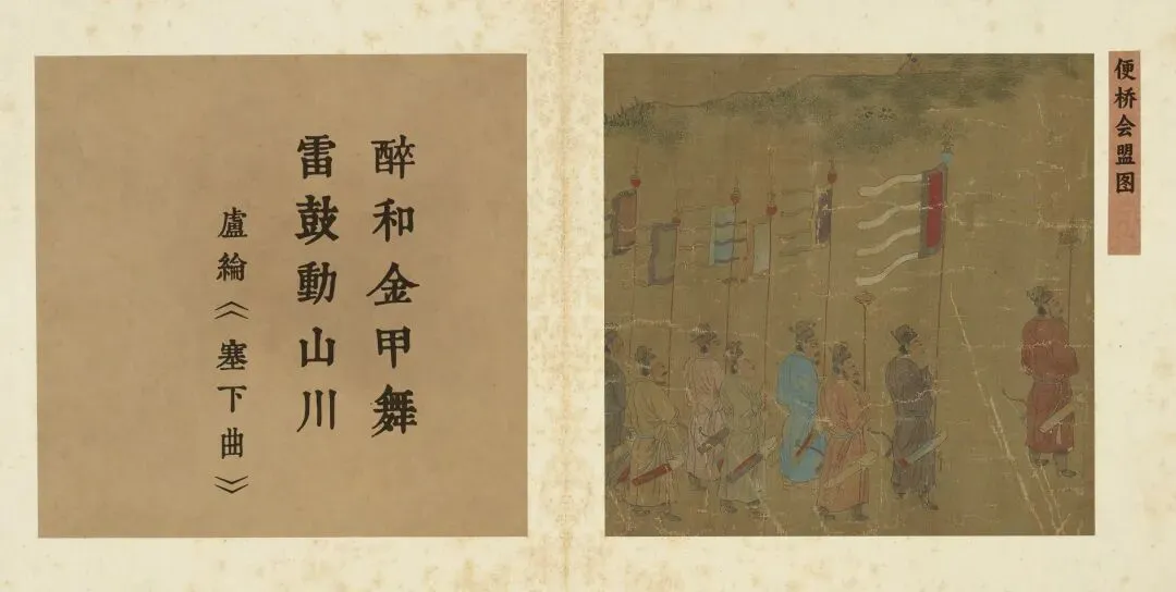仇英的《便桥会盟图卷》虽未直接描绘“醉和金甲舞”的狂欢场面,却以更为精妙的视觉叙事,展现了另一种意义上的“胜利之醉”——外交与胆略上的全胜所引发的、内化于秩序之中的精神昂扬。