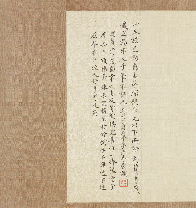 整幅画作因而超越了简单的叙事,成为文人心中理想生活状态的缩影:在友朋与诗书的陪伴中,以精神的充盈对抗时间的流逝,将瞬息的欢会定格为艺术与记忆中的永恒“晚照”。