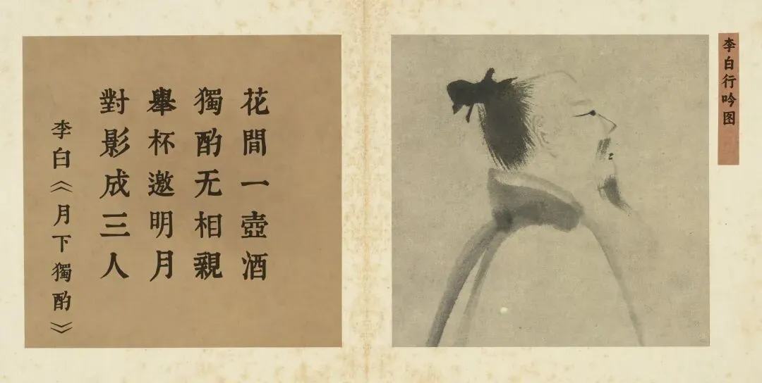 梁楷的《李白行吟图》以极致简淡的“减笔”水墨,精准捕捉了李白“举杯邀明月”这一独酌仪式的精神内核。画中不见花、酒、月、影的任何实物,只见诗人一袭素袍迎风,身形微仰,侧首望向虚空。这一姿态本身,便是“邀约”动作的永恒凝固。画家以寥寥数笔勾勒出的,并非日常的李白,而是他作为自己精神宴会中唯一主角与司仪的瞬间。