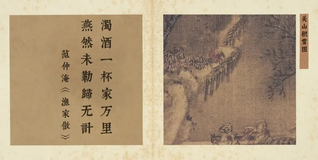 燕肃的《关山积雪图页》以冷寂无人的雪景,深刻诠释了“浊酒一杯家万里”中那份内化于孤独的庄严仪式。画中不见人影,只见浩茫群山在积雪覆盖下绵延至天际,一条小径蜿蜒隐没于幽谷。这绝对的静谧与空旷,正是戍边者“燕然未勒归无计”时,所面对的精神世界的视觉外化——家园在万里之外,功业未竟,个体被抛置于时空的孤绝之中。