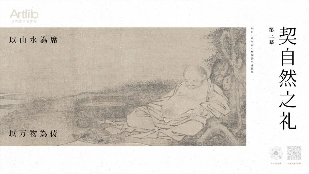 在《柳溪卧笛图》中,人物总是渺小地点缀于林壑之间,构图本身就在强调自然的绝对主体地位。李白的“我醉欲眠卿且去”,其真率不羁,正是因为他将自然(及如自然般的友人)的律动,置于人间虚礼之上,建立了一种更高级的、基于本真与信任的往来礼仪。此一幕的醉,是精神向万物敞开后,获得的深邃宁静与澎湃欣悦。