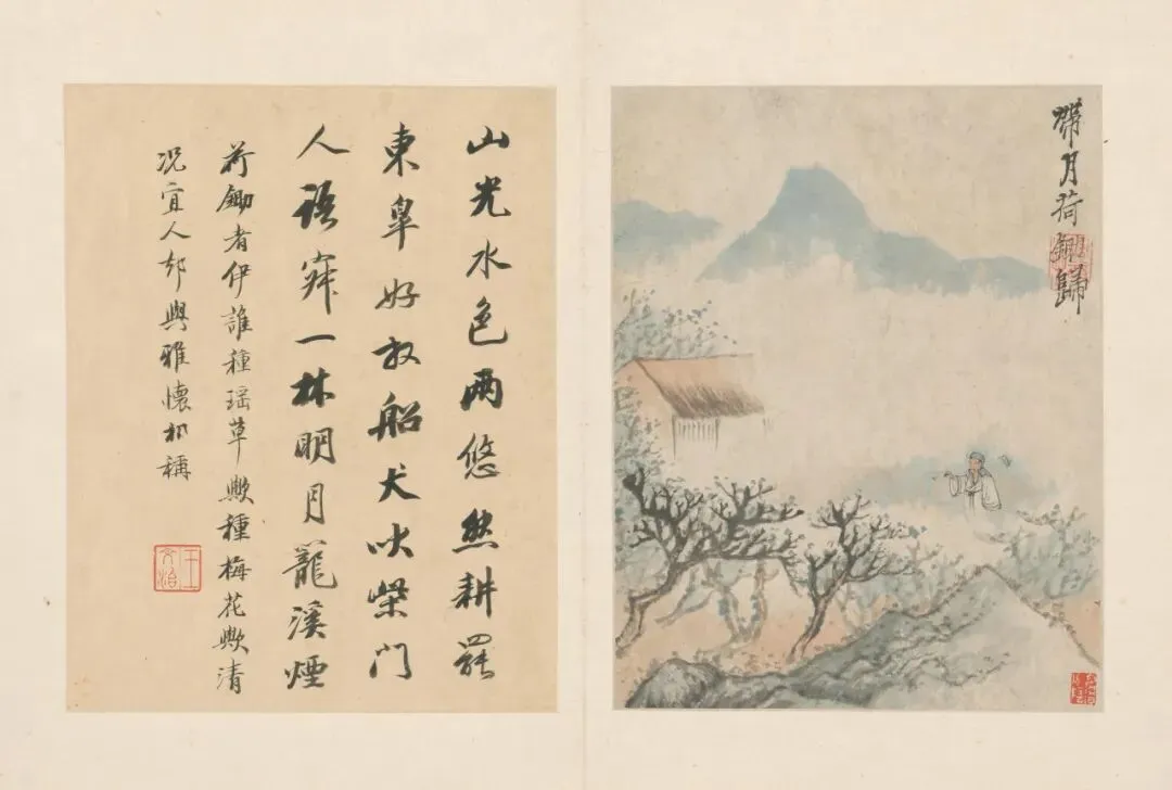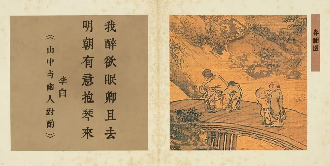 画作构图使人物自然点缀于林泉间,“山水的主体地位得以强调”。主人“醉欲眠”的真率与客人“抱琴来”的预约,建立了一种超越世俗客套、基于本真与知音的往来之礼。春日需要一场酣醉,这样才能使得个体生命“与万物生机欣然同化”,才能醉于绝妙的春景之中。