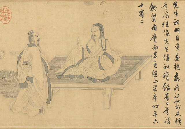 画面的大片留白,构成了这场私人仪式的神圣场域——那里既有他举杯相邀的明月,也有随身徘徊的清影。诗人通过内化的酒礼,将自身剖解为对饮的双方乃至多方,在绝对孤独中创造了丰盈的交流。梁楷笔墨的飘逸与疏放,正呼应了诗人在与天地、自我对话中达成的酣畅与精神超越。此画由此成为“独酌无相亲”最高境的视觉注解:当外在礼法悉数褪去,内心便升起一轮不灭的明月,照耀着自足而饱满的性灵宇宙。