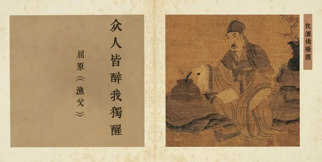 在陈洪绶的《饮酒读骚图》中,那位于凛冽寒夜中独对《离骚》、举杯自酌的高士,正是“众人皆醉我独醒”精神最孤峭的视觉铭刻。画中酒器与书卷并置,揭示出文人之“醉”的深邃悖论:这杯中之物,非为沉沦,而是“淬炼孤独、维系清醒的燃料”。在举世酣眠的漫漫长夜里,他借酒力点燃心火,以屈原的魂魄为伴,完成一场与亘古忠贞精神的对谈。