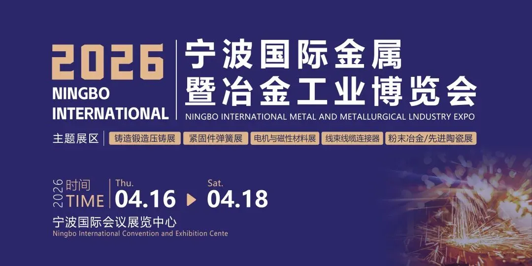 2026 年 4 月 16- 18 日,2026 宁波国际金属暨冶金工业博览会将在宁波国际会展中心 1、2、3、4 号馆盛大举办。