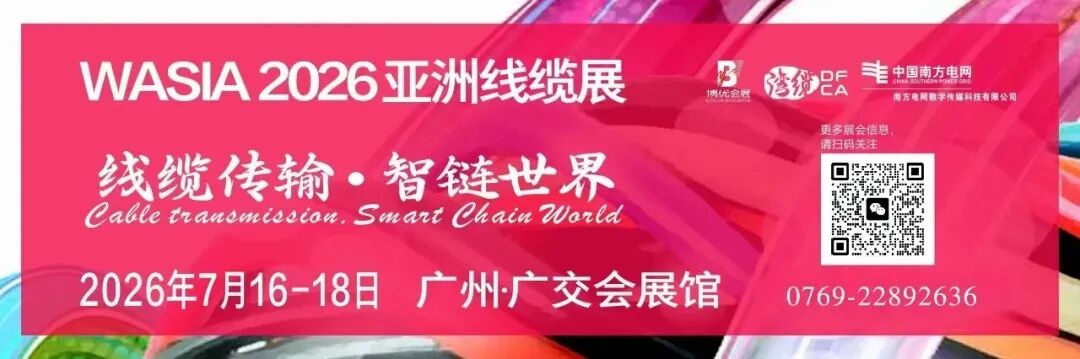 7月16-18日,中国进出口商品交易会展馆,2026亚洲线缆展诚邀海内外线缆人齐聚羊城,以线缆为媒,以创新为魂,以合作为本,共赴这场行业盛宴,共启线缆行业高质量发展新征程!