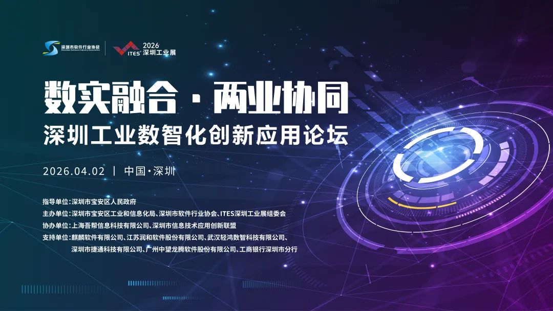 2026 ITES深圳工业展会期间,深圳市软件行业协会联合多方首次举办工业数智化服务产品及应用案例展暨工业数智化应用创新论坛,以"制造业与服务业协同"为主线,融合工业AI、开源鸿蒙、国产工业软件三大专题板块,呼应广东省"两业融合"战略,为工业企业提供从技术底座(操作系统)到智能应用(AI)再到工具链(工业软件)的全栈解决方案。