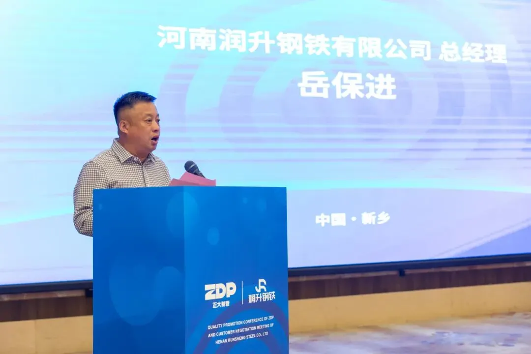 作为正大制管一级代理商,河南润升钢铁有限公司总经理岳保进在发言中分享了公司多年来深耕本地市场的经验与优势。他表示,润升钢铁将依托正大制管强大的品牌实力与产品支撑,持续优化本地化服务体系,为客户提供更优质的产品、更实惠的价格、更周到的服务和更专业的技术支持。