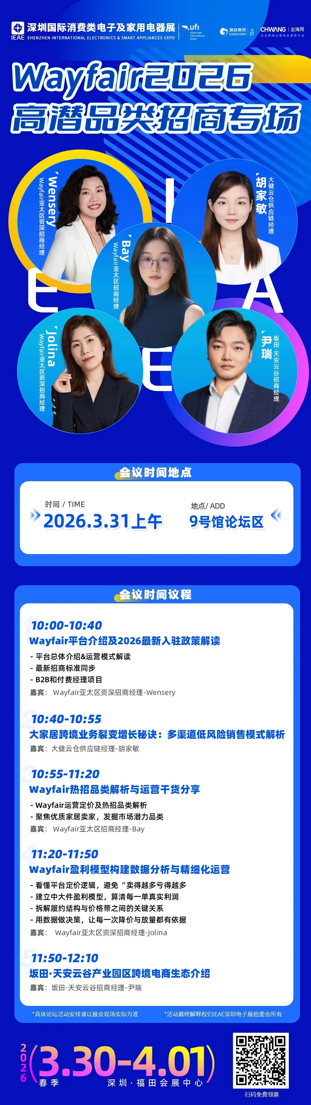本届展会现场深度策划消费类电子、智能家电创新及跨境私模出海发布会三大核心板块,同期奉上近10场高密度主题论坛!