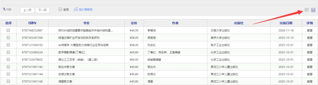 1.1、平台可按图书的出版时间、定价排序。也可按价格区间、出版时间段、重点图书【即图书馆关注的重点出版社】进行筛选。