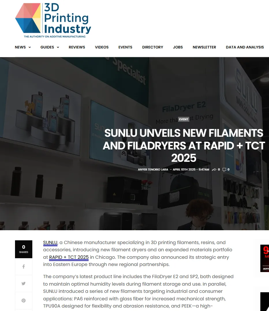 更关键的是,SUNLU将展会的“瞬时曝光”转化为“长效资产”——全球知名3D打印垂直媒体3D Printing Industry随即发布专题报道,详细解读新品参数并引用其欧洲市场负责人的发言,该报道被多个行业社区转载,形成二次传播。