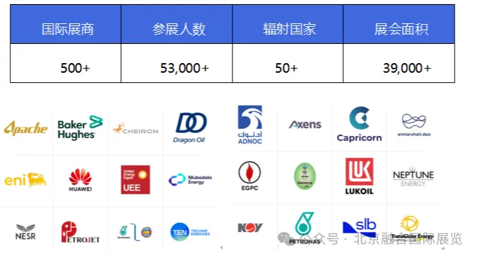 2025年埃及国际石油展展馆面积39,000平方米,共设有13个国家馆,来自120多个国家的25个国家石油公司到访展会,参展商500余名,观众高达40,000人次。