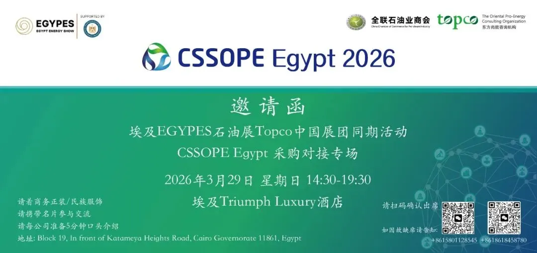 同期活动:埃及采购专场——中国石油化工装备采购国际峰会(CSSOPE Egypt 2026)