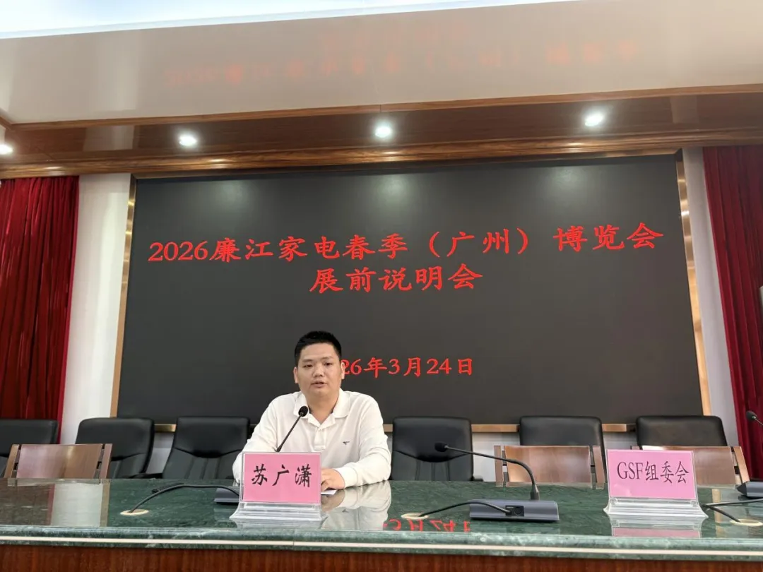 3月24日下午,GSF广州采购交易会暨2026廉江家电春季(广州)博览会展商说明会在廉江市圆满落幕。活动得到廉江市科工贸和信息化局、湛江廉江高新技术产业开发区、廉江市家用电器行业协会鼎力支持,50余家廉江家电企业代表齐聚,共话发展机遇,为春季展会筹备凝聚合力,为家电出海明确路径。