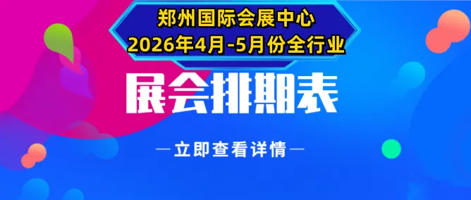 展会排期网-zhxxpq.com花费大量人力物力,坚持为大家整理编辑各地展会排期表,只因为我们知道这是您想要的信息,我们坚持做一个有内容、有价值的网络服务平台。据不完全统计,2026年4月-5月份河南郑州全行业全产业链已知大小规模展会活动有近25场+...... 2026年全国即将有众多大牌展会悉数登场,行业涵盖了餐饮食材、大健康、家博会、清洁用品、烘焙、保健、跨境电商、食品、食品设备、纺织、酒店用品、跨境电商、半导体、五金机械、铁路轨道、汽车制造、智能装备、机床车床、机械设备、航空航天、化妆品、服装纺织、清洁用品、珠宝、宠物、家居、茶博会、农机、美容美妆展等多个领域。哪些精彩展会值得您重点关注和参与?敬请持续留意我们后续发布的详细展会信息排期预报哦!