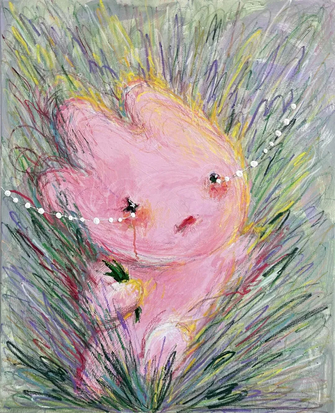 文彩银的实践恰好回应了当下两个重要的文化议题。一方面,当"情绪价值""内耗"成为社交媒体高频词汇,情感体验正被快速标签化和商品化,而她选择用绘画这一缓慢媒介还原情绪本身的复杂性与不可简化性——不提供速效的情绪出口,而是邀请观者与自身那些说不清的感受共处。另一方面,在全球具象绘画回潮的趋势中,她将柔和的视觉图像与心理相融合,形成了一套既亲切又具有思想纵深的视觉语言,使作品触达观众内心——证明了在情感日益被简化的时代,绘画依然拥有直击心灵、拓展共情的持久力量。