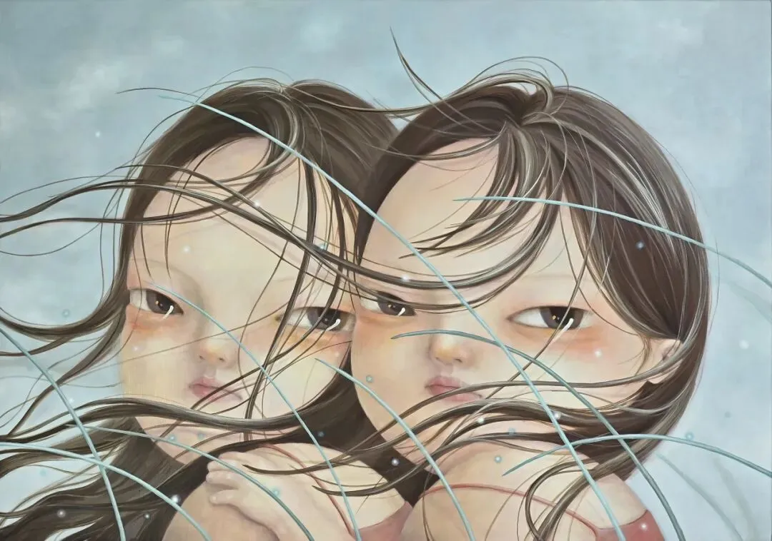 Tracing the arc of Mun's oeuvre reveals a clear trajectory of deepening inquiry. Earlier works focused on emotions dissipating in the wind—compositions of lightness and fluidity that demonstrated a gift for translating abstract affect into figurative imagery. The new works here mark a pivotal shift: no longer content with depicting emotional "release," Mun turns toward more elusive psychological terrain. Twins employ orchestrated repetition and displacement to expose contradictory affects coexisting within a single subject; Grip boldly freezes the moment of "retention"—when one knowingly clings to pain and refuses to let go. From release to retention, this turn propels her practice beyond affective rendering toward a deeper interrogation of human psychological mechanisms.