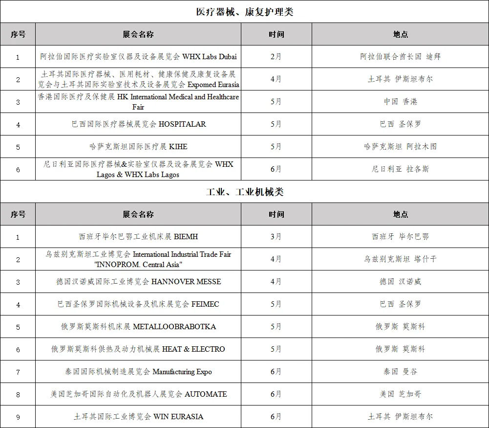 2026年上半年重点展会 - 医疗器械 康复护理类、工业 工业机械类