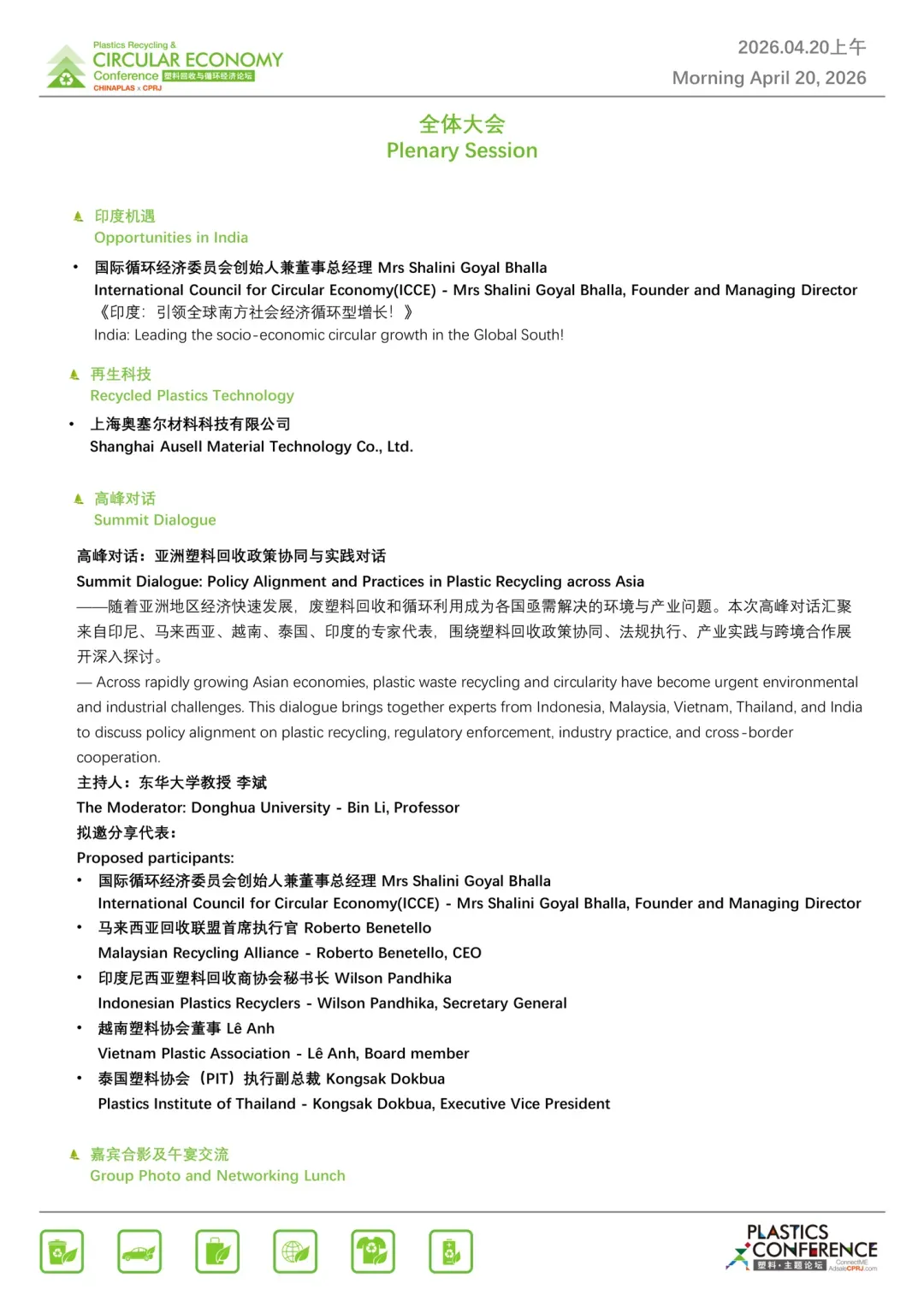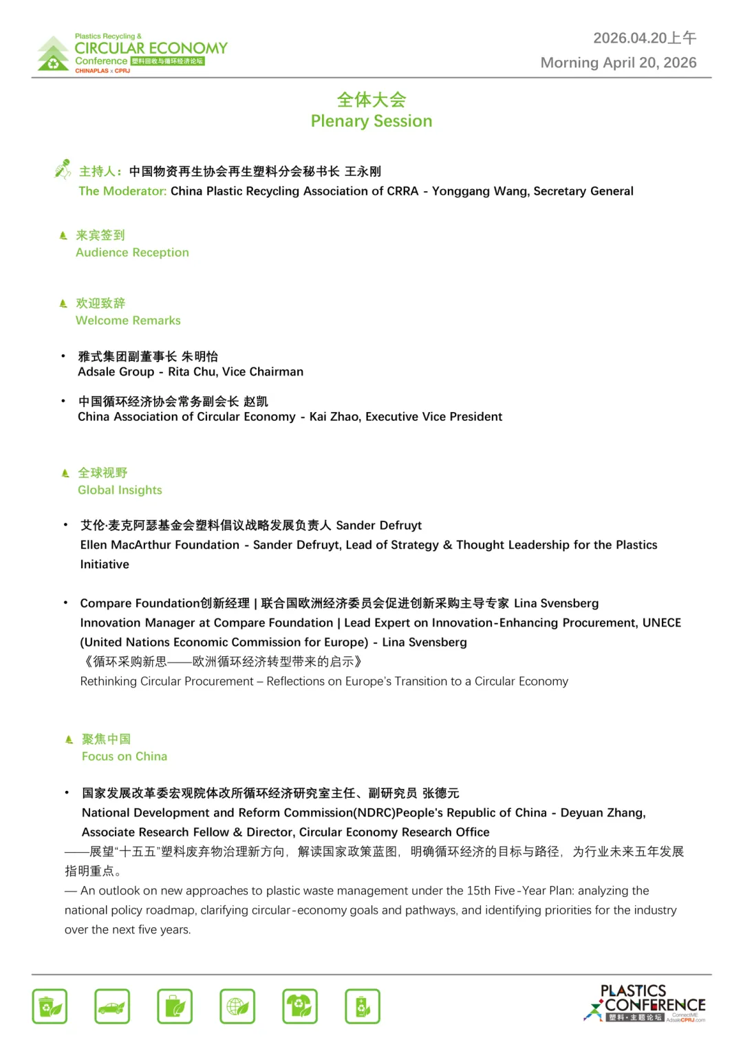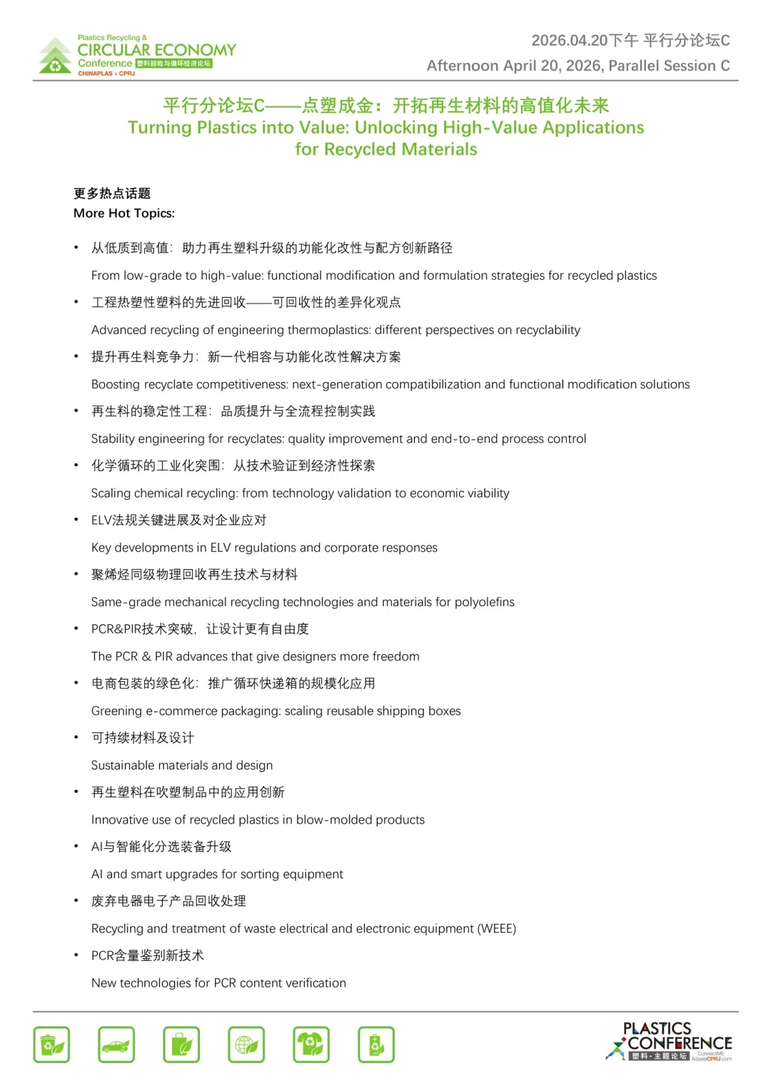 亲见可持续创新实践,与推动循环经济的全球同行深入交流。无论您关注环保、生产效率,还是新商业模式——这里都是您学习、连接、引领变革的舞台。