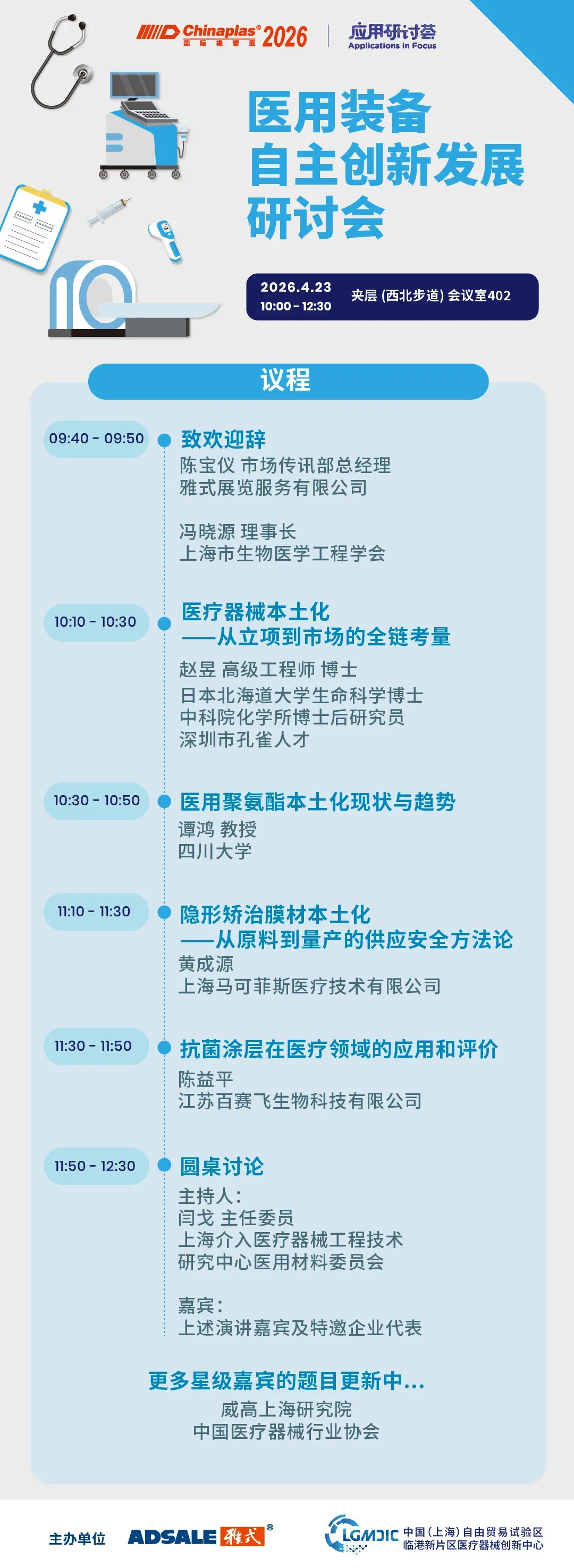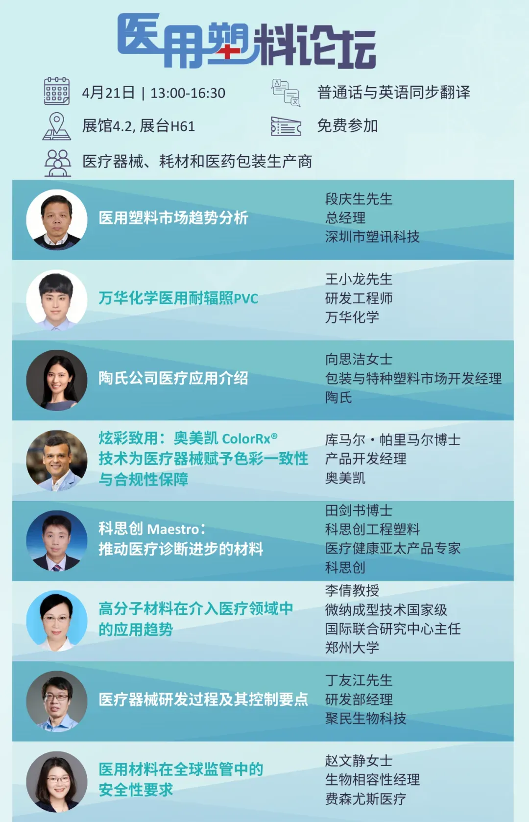 “医用塑料论坛”集合奥美凯、陶氏、科思创、万华等领军企业,带来含金量极高的技术介绍,探索加速医疗创新落地的解决方案。